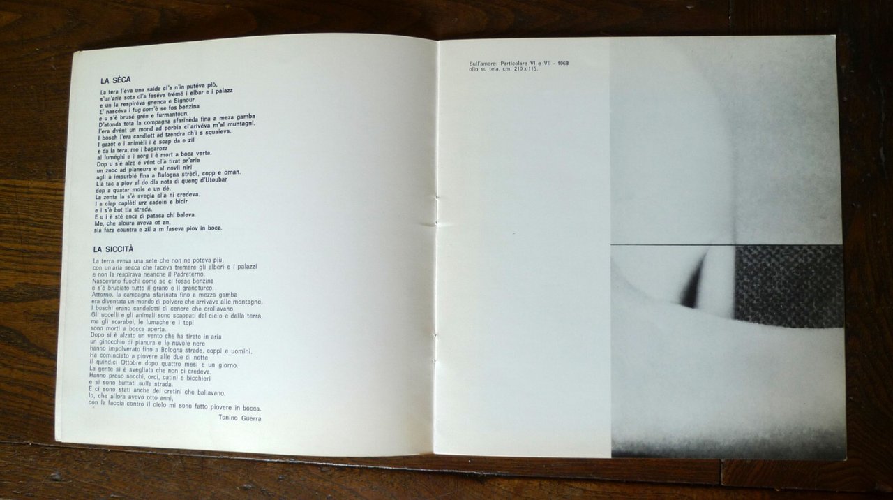 FRANCO SARNARI.Catalogo della mostra,dal 9 marzo 1974.Forni Galleria d'Arte, Bologna 1974,brossura, rilegatura con punto metallico,22,5x21,5 cm., pp.16 non numerate,illustrazioni in bianco e nero,con una poesia di Tonino Guerrain dialetto romagnolo con traduzionein italiano,peso: g.300cod.9465CONDIZIONI DEL CATALOGO: ottime