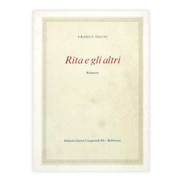 Autore: Franco Togni Titolo: Rita e gli altri Edizione: Edizioni Gianne Casagrande SA - Bellinzona 1961 Dimensioni: 15 x 21,5 cm c.a. Peso: 0,306 kg Pagine: 193 Copertina: Brossura con alette Condizioni: Ottime come da foto