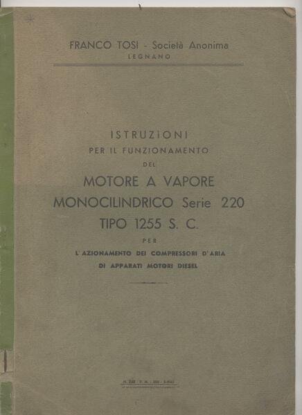 Franco Tosi - Istruzioni per il funzionamento del motore a vapore monocilindrico serie 220 tipo 1255 S. C.