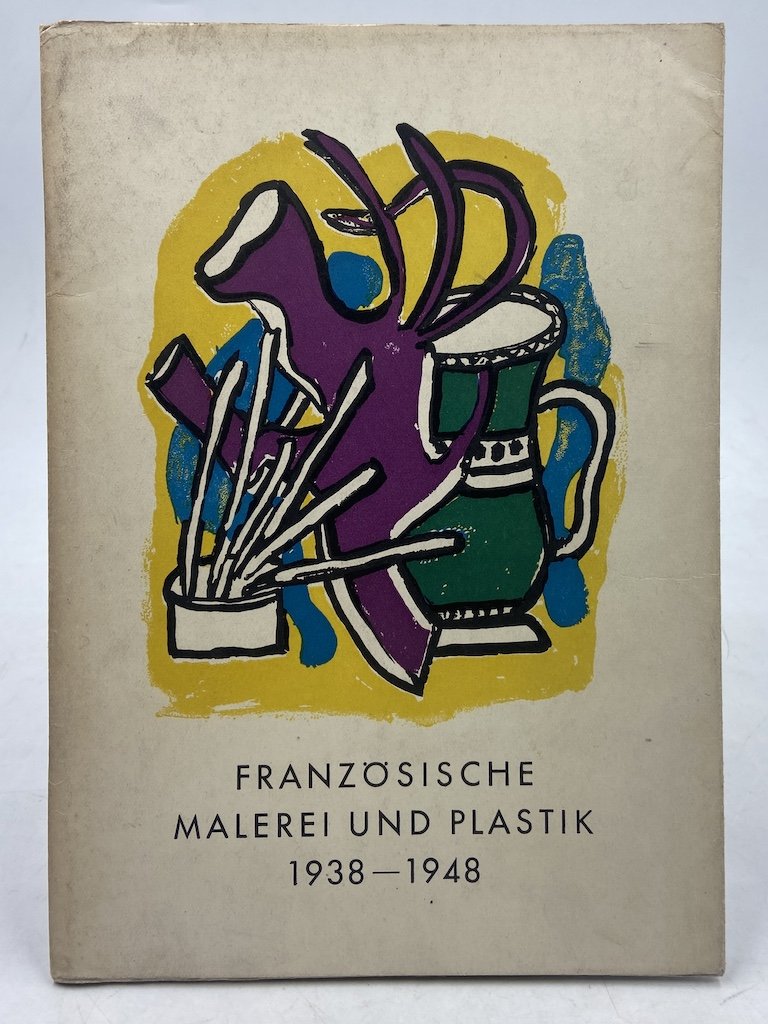 Catalogo della mostra, brossura spillata con sovraccoperta, cm 21x15, pp 31 (1), 8 tavole in nero. Catalogo della mostra berlinese dedicata all’arte francese tra il 1938 e il 1948, con testo di Jacques Lassaigne e tavole riproducenti opere di Chagall, Hartung, Leger, Masson, Marchand, Vieira da Silva, Taillaux e van Velde. Testo in tedesco. Sul piatto anteriore illustrazione a colori, e altra in nero ripetuta sui due risvolti, in pregevole stampa, nello stile di Leger ma non firmate e senza indicazione dell’autore.