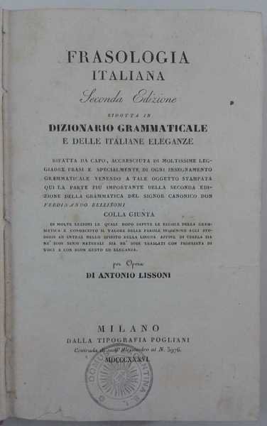 Frasologia italiana Seconda Edizione ridotta in Dizionario grammaticale e delle italiane eleganze - Volume II D-L