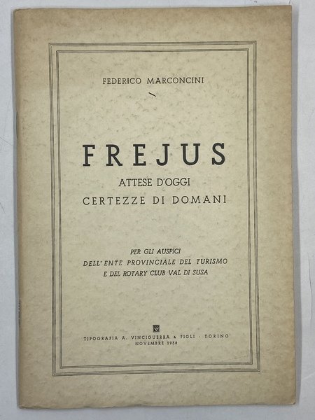 FREJUS. ATTESE D’OGGI CERTEZZE DI DOMANI. Per gli auspici dell’Ente Provinciale del Turismo e del Rotary Club Val di Susa.
