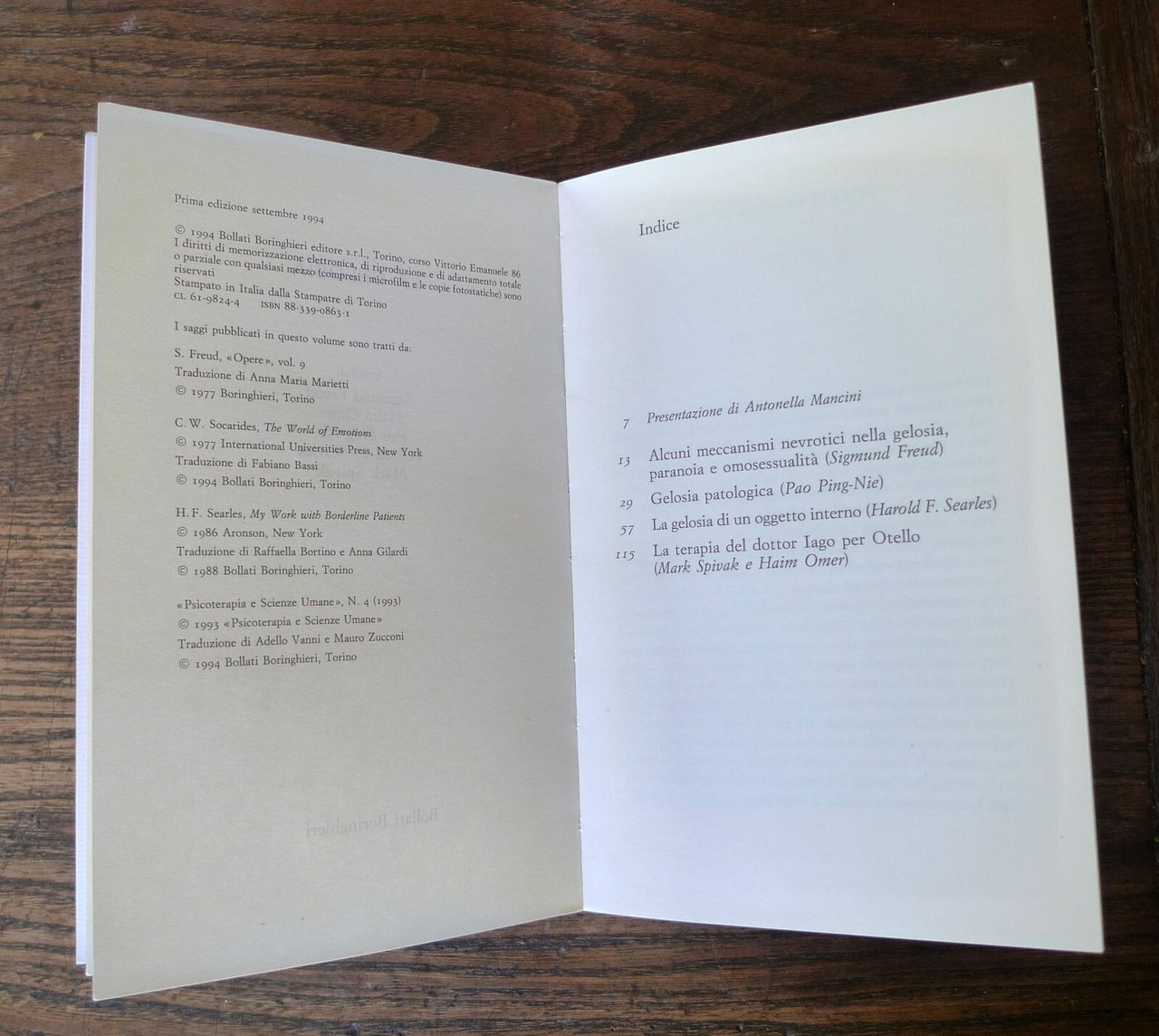 Freud/Omer/Ping-Nie/Searles/Spivak,LA GELOSIA,'94 Bollati Boringhieri[psicologia