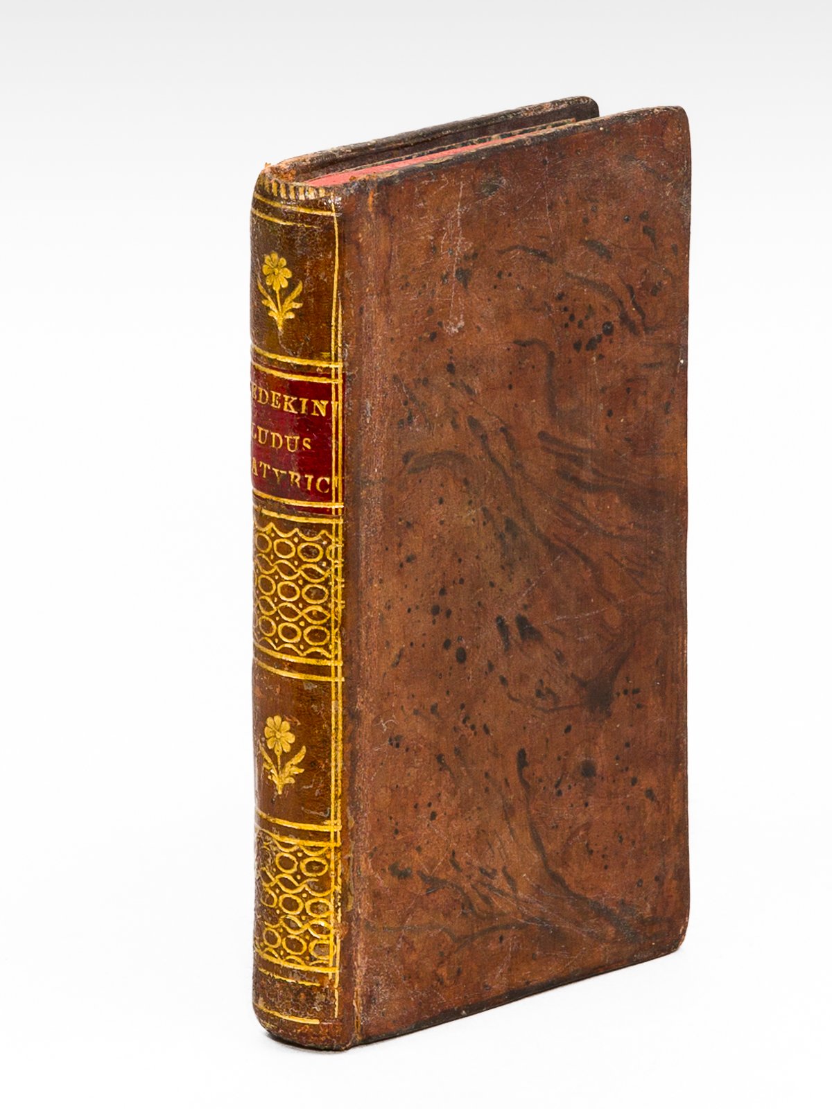 1 vol. in-32 reliure postérieure début XIXe pleine basane racinée, dos lisse orné, chasses ornées, Ex Officina Joannis Maire, Lugduni Batavorum [ Leyde ], 1631, 215 pp. L'humaniste et théologien Friedrich Dedekind (1524-1598) fit ses études à Marburg et Wittenberg, où ses talents furent reconnus par Melanchthon. Son oeuvre la plus célèbre reste ce "Grobianus", poème élégiaque en vers latin, décrivant un fictif "Saint Grobien" enseignant de manière ironique aux hommes comment éviter les mauvaises manières, la gloutonnerie et l'ivrognerie. Grobianus, ou Grobian dans sa forme germanique, est un personnage du folklore allemand symbolisant la rustrerie et la grossièreté. Les gens n'ayant jamais été aussi mal élevés que depuis qu'on leur apprend les bonnes manières dans des traités de civilité, Dedekind propose de leurs inculquer les mauvaises manières ; alors, peut-être, leurs mœurs s'amélioreront-elles ? Bon exemplaire. The humanist and theologian Friedrich Dedekind (1524-1598) studied in Marburg and Wittenberg, where his talents were recognized by Melanchthon. His most famous work remains this "Grobianus", an elegiac poem in Latin verse, describing a fictitious "Saint Grobien" ironically teaching men how to avoid bad manners, gluttony and drunkenness. Grobianus, or Grobian in its Germanic form, is a character in German folklore symbolizing boorishness and rudeness. People having never been so badly brought up as since they were taught good manners in treatises on civility, Dedekind proposes to inculcate bad manners in them; then, perhaps, their morals will improve? Good copy.