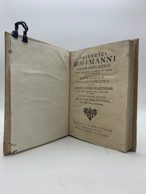 In 8 (cm 17 x 22,5), pp. (4) + 332. Legatura coeva in piena pergamena. Edizione veneziana della sola parete degli Opuscula pathologico-practica di Friedrich Hoffmann, usciti in precedenza, sempre a Venezia, nel 1738, unitamente ad altre opere. Hoffmann (1660-1742), chimico tedesco, medico personale di Federico I a Berlino, fu professore di medicina ad Halle, autore di trattati sulla analisi delle acque minerali, sulla magnesia alba e fondatore dell'analisi chimica. Hoffmann si fece portavoce di una medicina razionale e sistematica con cui assunse una posizione intermedia tra il vitalismo animistico di Stahl e il meccanicismo di Boerhaave.
