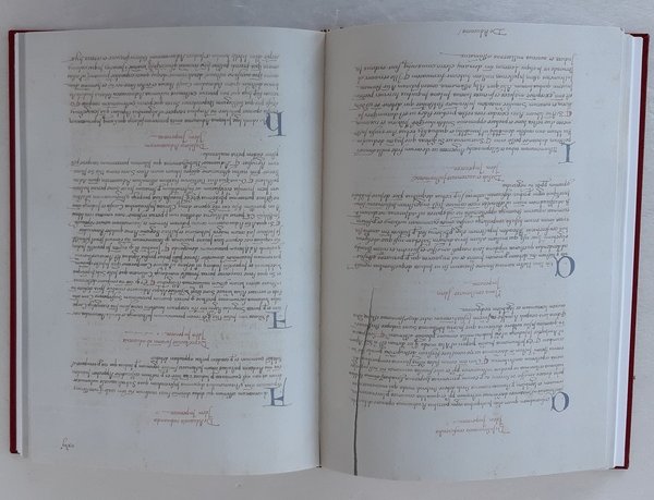 Quarto (33 x 23,5 cm). 72; CV p. Illustrazioni numerate all’interno del testo, inserto non numerato con copia anastatica del codice Qq. H. 124. Volume stampato in carattere Garamond, cucito e legato a mano in brossura francese in oro a caldo, tirato in 999 esemplari numerati. Volume in perfetto stato.