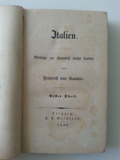 FRIEDRICH VON RAUMER ITALIEN ZUR KENNTNIS DIESES LANDES LEIPZIG BROCKHAUS 1840