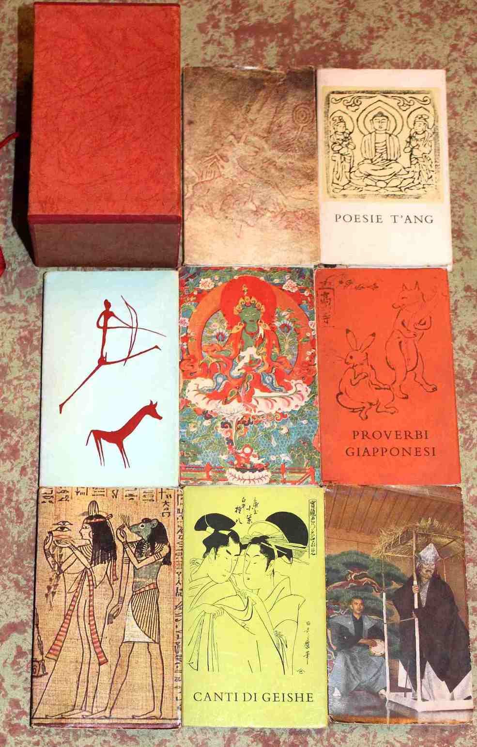 Frobenius, Leo. Il liuto di Gassire. Leggenda africana con una nota di Ezra Pound. - Poesie T'ang. A cura di Giacomo Prampolini - Incantesimi e scongiuri degli antichi egiziani. A cura di Boris de Rachewiltz - Canti del Dalai-Lama - Costanzo, Giorgio. Poesie degli Indios Piaroa - Proverbi giapponesi. A cura di Atsuko e Giuseppe Ricca - Canti di Geishe. A cura di Atsuko e Giuseppe Ricca - Fenollosa, Ernest - Pound, Ezra. Introduzione ai No. Raccolta di 8 volumetti