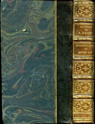 In-16°, pp. (6), (4), 470, (2), attraente legatura coeva m. pelle marrone con titolo, filetti, fiorellini e motivi vegetali in oro entro scomparti su dorso a nervetti. Piatti marmorizzati, taglio di testa dorato, sguardie pavonate, segnacolo. Fregi tipografici. Conservata la brossura originale. Perfetto esemplare. Raffinata edizione di questo romanzo di Daudet di ambiente parigino. Pubblicata nel 1874, l'opera ebbe grande successo di pubblicò e assicurò a Daudet la fama letteraria. 'Intorno ai personaggi principali e al loro dramma si muove, nella promiscuità dei grandi casamenti popolari, tutto un mondo di povera gente. tutti descritti con finezza d'analisi e guardati con quell'amore e quella comprensione delle umili vite che rimase al Daudet come eredità della sua giovinezza povera' (Elena Ceva Valla in Diz. Bompiani d. Opere, III, p. 524).