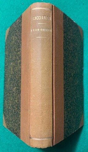 In 8°; 271, (1) pp. Legatura coeva in mezza tela con piatti foderati con carta marmorizzata. Titolo ed autore in oro al dorso. Antico timbretto di proprietà privata alla prima carta bianca. Esemplare in buone-ottime condizioni di conservazione. Prima edizione, assai rara di questo romanzo del noto uomo politico, patriota e scrittore veneto, Antonio Caccianiga (Treviso, 30 giugno 1823 Maserada sul Piave, 22 aprile 1909). In giovane età Caccianiga studiò storia naturale ed economia rurale ma poi, le sue idee politiche antiautriache e liberali lo portarono a dover girovagare per l'Italia e l'Europa per cercare di sottrarsi alla all'interesse della polizia austriaca. Fu così che visse in Piemonte, Svizzera, Francia ed Inghilterra con scarsi mezzi dato che il governo austriaco aveva sequestrato i beni paterni. Nel 1854 riuscì a tornare a Treviso dopo aver ricevuto l'amnistia, grazie ad un amico che lo ospitò nella sua villa a Masareda sul Piave. Vivacissimi furono i suoi collegamenti i patrioti e gli intelletuali italiani esuli. Politico dai numerosi contatti, durante la sua vita ricoprì diverse cariche prestigiose fra le quali quella di podestà e sindaco di Treviso, sindaco di Maserada, prefetto di Udine, Presidente del Consiglio della Provincia di Treviso, consigliere della Scuola di Enologia di Conegliano, Presidente dell'Ateneo di Treviso e Deputato del Regno d'Italia. Nel 1866 fu, anche, membro della delegazione che presentò a Re Vittorio Emanuele II i risultati del plebiscito per l'annessione del Veneto al Regno d'Italia. Caccianiga fu anche un prolifico giornalista e scrittore, autore di romanzi risorgimentali ed antiaustriaci come "I vampiri e l'incubo", "Il convento", "Brava gente", "Il roccolo di Sant'Alipio" e "Il proscritto". Tra le sue opere figurano anche elogi alla vita campestre, come "La vita campestre", "Il dolce far niente", "Le cronache del villaggio", "Il bacio della contessa Savina", "Frondeggi", e "Lettere dun marito alla moglie morta". Nota è anche la sua opera dedicata a Trevido, "Ricordo della provincia di Treviso". La sua opera fu molto apprezzata tanto che di lui paralrono in toni assai positivi Bendetto Croce e Enzo Demattè. Molte delle sue opere sono assai rare come ad esempio, quella qui presentata.