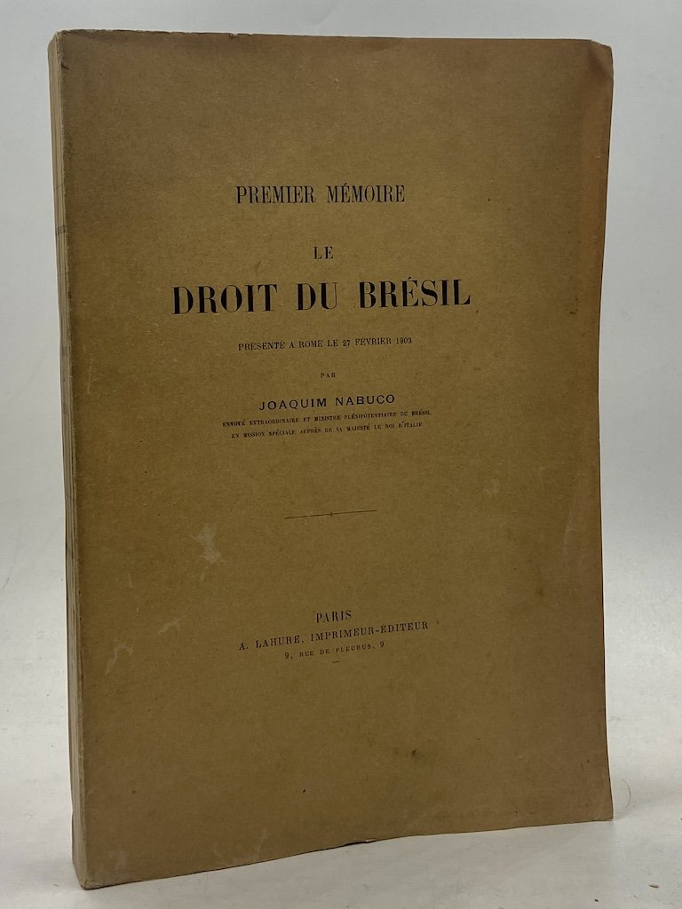 Frontières du Brésil et de la Guyane Anglaise. Question soumise a l’arbitrage de S. M. Le Roi d’Italie. Premier Mémoire Brésilien. LE DROIT DU BRÉSIL présente a Rome le 27 février 1903 par Joaquim Nabuco.
