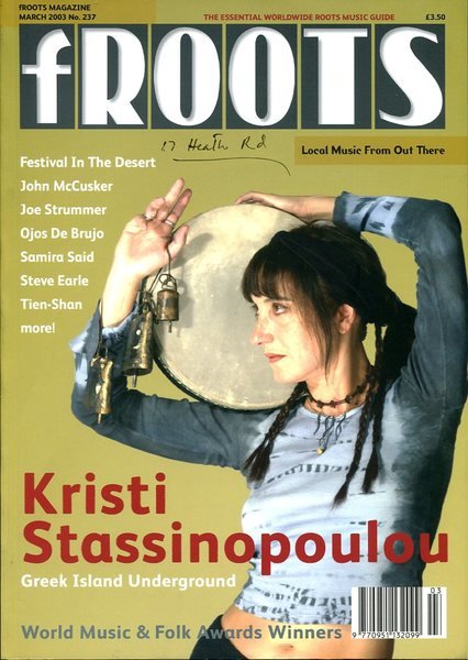 Partial address to front cover. No other marks or inscriptions. No creasing to covers or to spine. A very clean very tight copy with bright unmarked boards and no bumping to corners. 90pp. Folk music magazine. Artists and album reviews, interviews with folk artists and groups, instrument notes, folk music from around the world, comments and folk news. Featured in this issue are Kristi Stassinopoulou, Ojos de Brujo, Samira Said, Steve Earle, John McCusker, Festival in the Desert, Tien Shan, Joe Strummer.