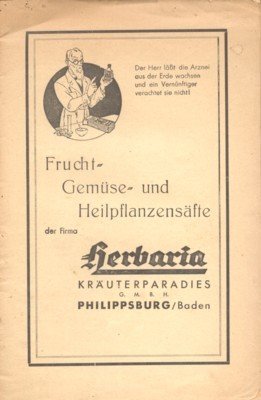 Frucht-, Gemüse- und Heilpflanzensäfte der Firma Herbaria Kräuterpardies. I. Teil H. Cremer, Experimentelle Versuche mit Pflanzensäften "Herbaria"; II. Teil: Verzeichnis der wichtigsten Frucht-, Gemüse- und Heilpflanzen-Rosäfte "Herbaria".