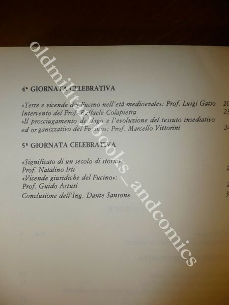 FUCINO CENTO ANNI 1877-1977 ATTI DEL CONGRESSO PER IL CENTENARIO PROSCIUGAMENTO
