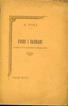 In-16°, pp. 24, brossura editoriale con fregio tipografico. Fioriture minime al piatto. Intonso. Unica edizione. Liriche di intonazione patriotica e filocristiana contro 'la malefica influenza della Setta Anticristiana conculcatrice iniqua della Fede avita'. CUBI, 469971. BNI 1890, 4070.<br>