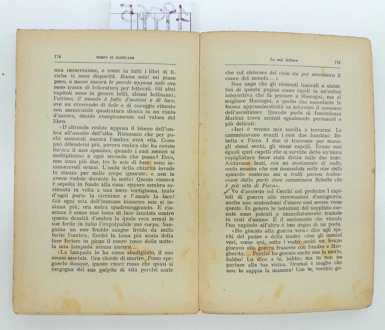 legatura morbida editoriale in precarie condizioni, aloni e bruniture ai piatti, dorso con strappi riparati ai margini, lievi abrasioni e pieghe di lettura, tagli bruniti irregolari con fioriture diffuse, interno in condizioni accettabili, fioriture alle pagine interne che non vanno a disturbare la lettura, numero pagine 272 dimensioni cm 19 x 12,5