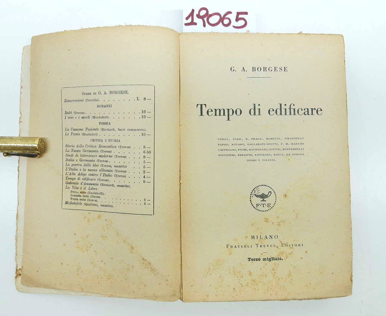 G. A. Borgese Tempo di edificare Fratelli Treves 3° migliaio 1924