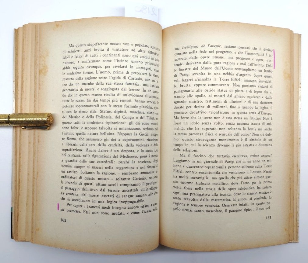 Legatura morbida editoriale con segni del tempo, alcuni aloni e sporcizie ai piatti e al dorso, margini con piccole pieghe ed abrasioni, aloni e fioriture alle prime ed ultime pagine, vedere immagini, tagli bruniti con fioriture ed impolverati quelli superiori, bruniture al margine esterno delle pagine e alcune macchie al margine superiore, segni di matita viola al margine del testo delle pagine, numero pagine 236 dimensioni cm 20,9 x 13,7