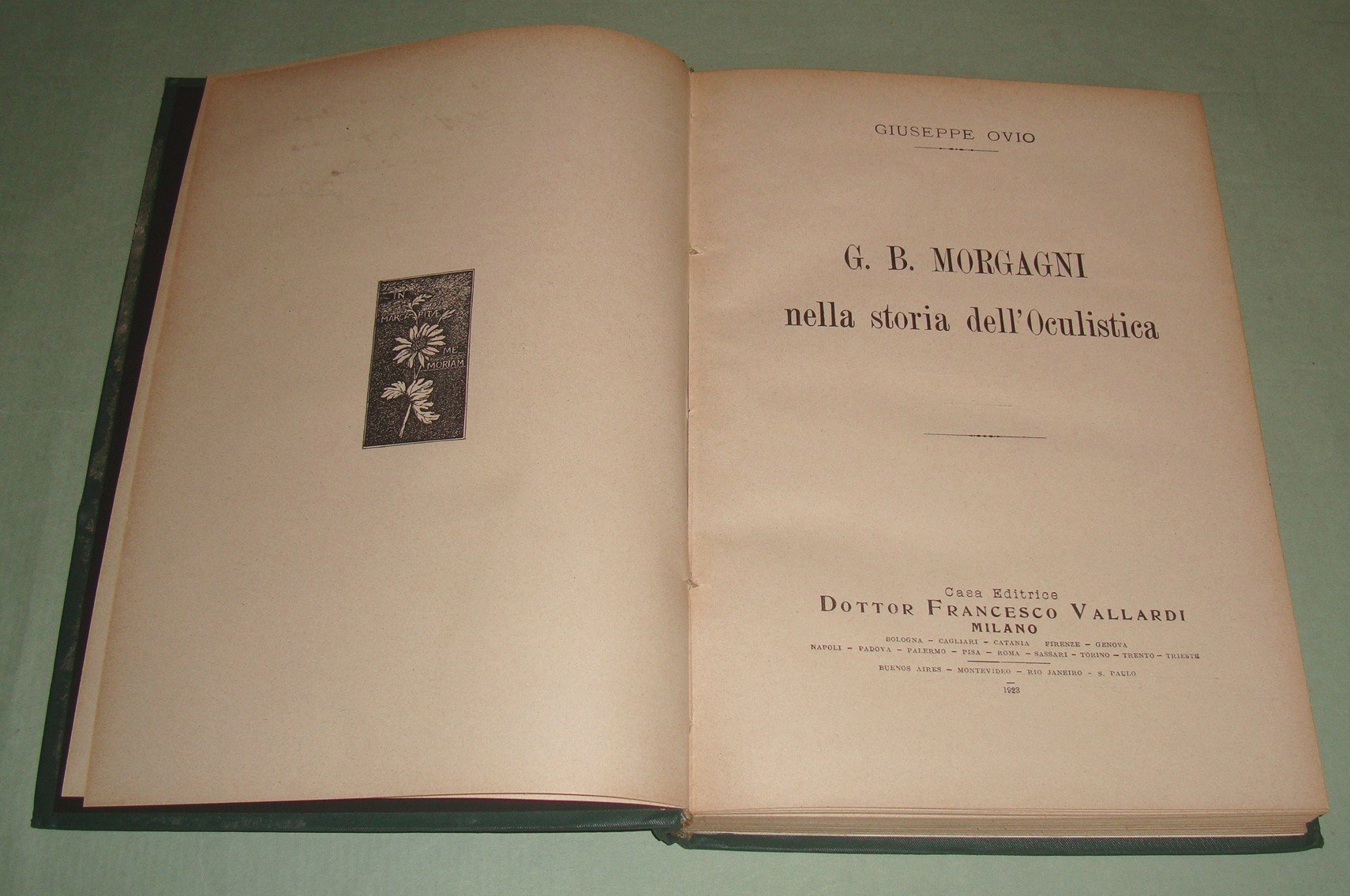 Milano, Vallardi, 1923. In 8vo; pp.273, 2n.nn. Ritratto del Morgagni e VI tavole in fine. Tela editoriale, titolo in oro al piatto anteriore.