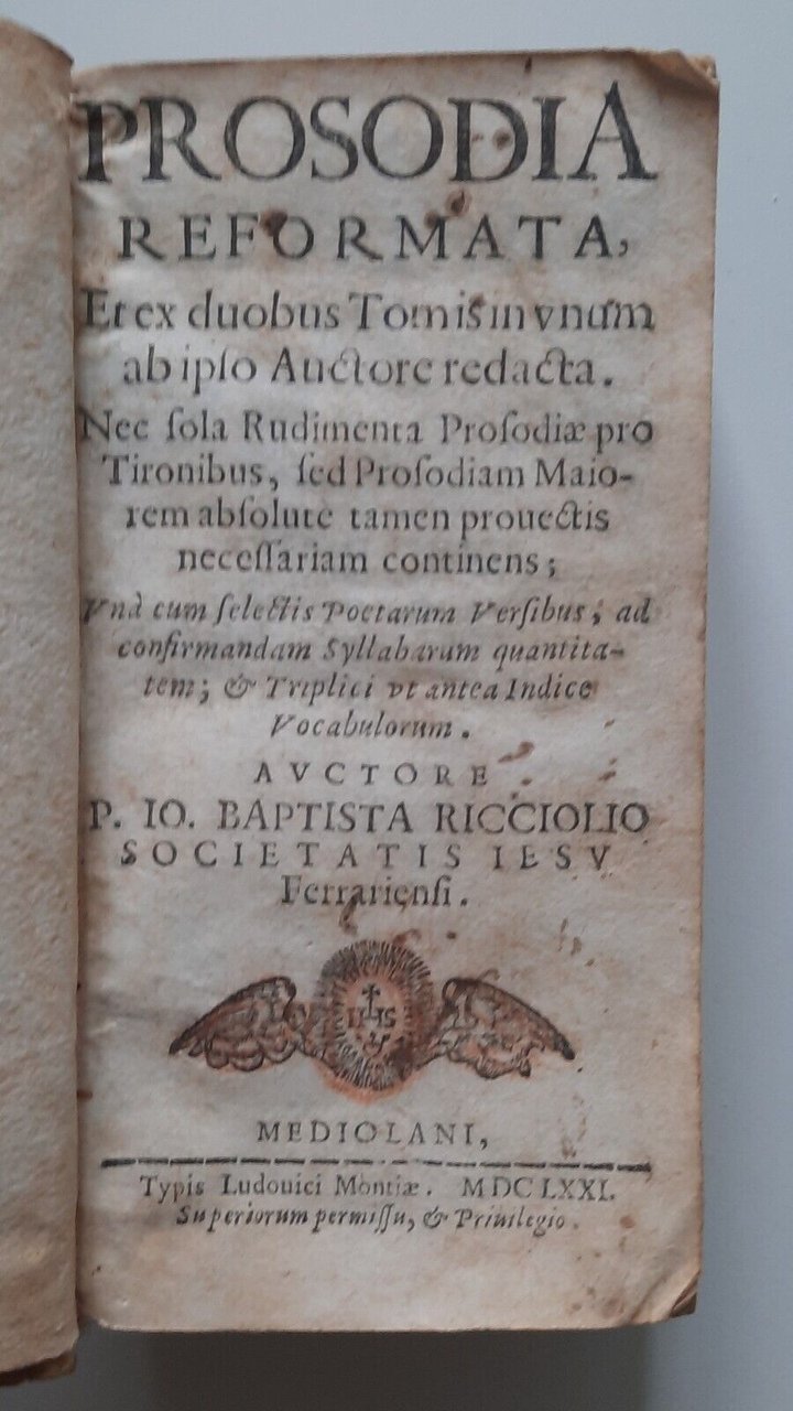 G. B. RICCIOLIO PROSODIA RIFORMATA MEDIOLANI 1621 L. MONTIAE