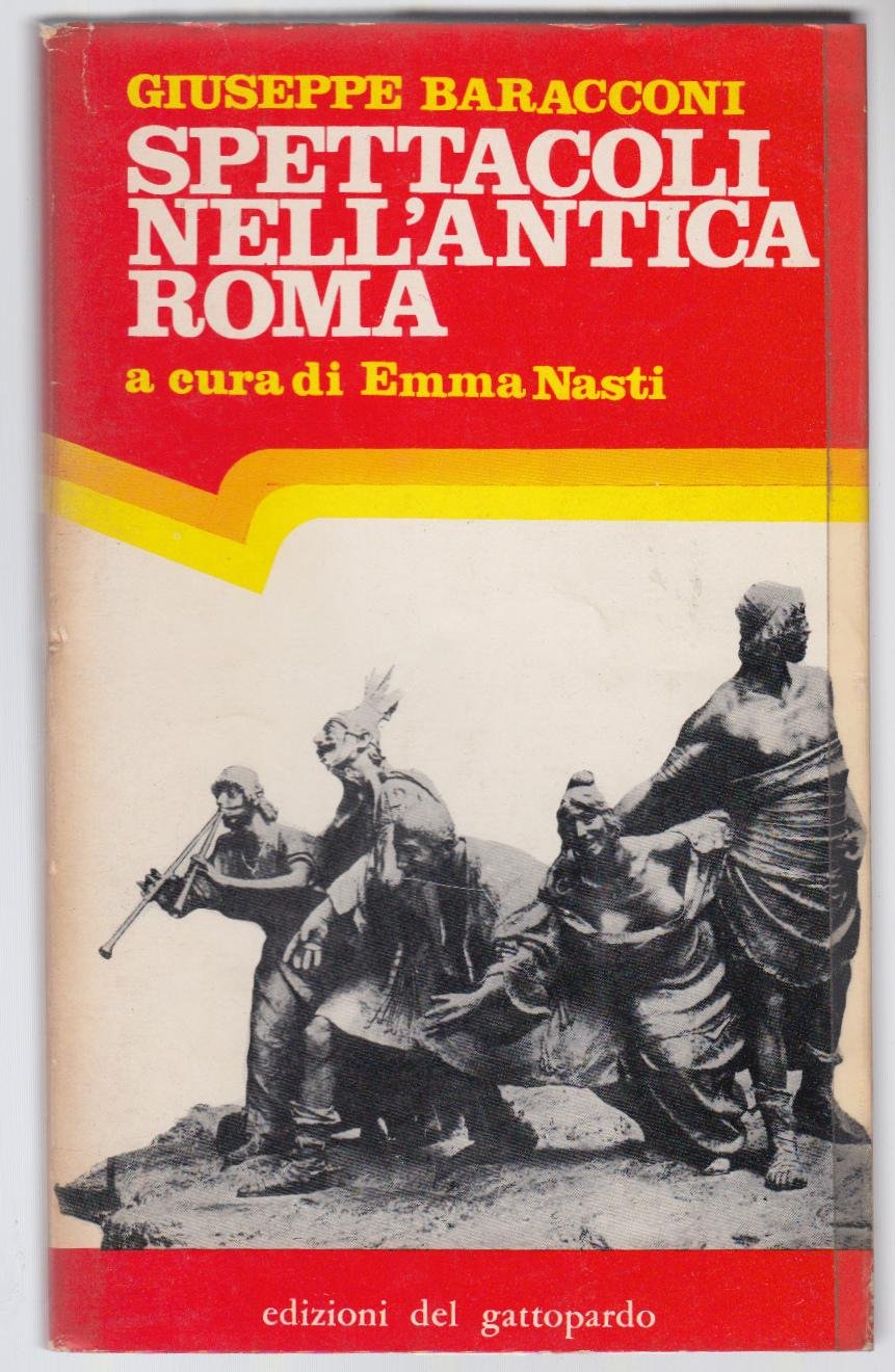 GIUSEPPE BARACCONI SPETTACOLI NELL'ANTICA ROMA A CURA DI EMMA NASTI EDIZIONI DEL GATTOPARDO 1972 SOVRACCOPERTA EDITORIALE CON LIEVI SEGNI DEL TEMPO NASTRO ADESIVO TRA IL PIATTO ANTERIORE E L'ALA INTERNA, DORSO BRUNITO DAL SOLE, COPERTINA MORBIDA EDITORIALE, INTERNO IN BUONO STATO TAGLI LEGGERMENTE INGIALLITI MARGINI LIEVEMENTE BRUNITI N. PAG. 173 CM. 21 X 13