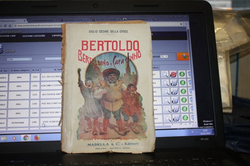 CODICE 3313, , G.C. DELLA CROCE - BERTOLDO BERTOLDINO E CACASENNO - MADELLA - 1932, Volume formato cm 19,5 x 13. Bross. edit. con titoli e ill. a colori. Nuova edizione adorna di otto incisioni originali. Pagine 192., dorsetto danneggiato esemplare slegato