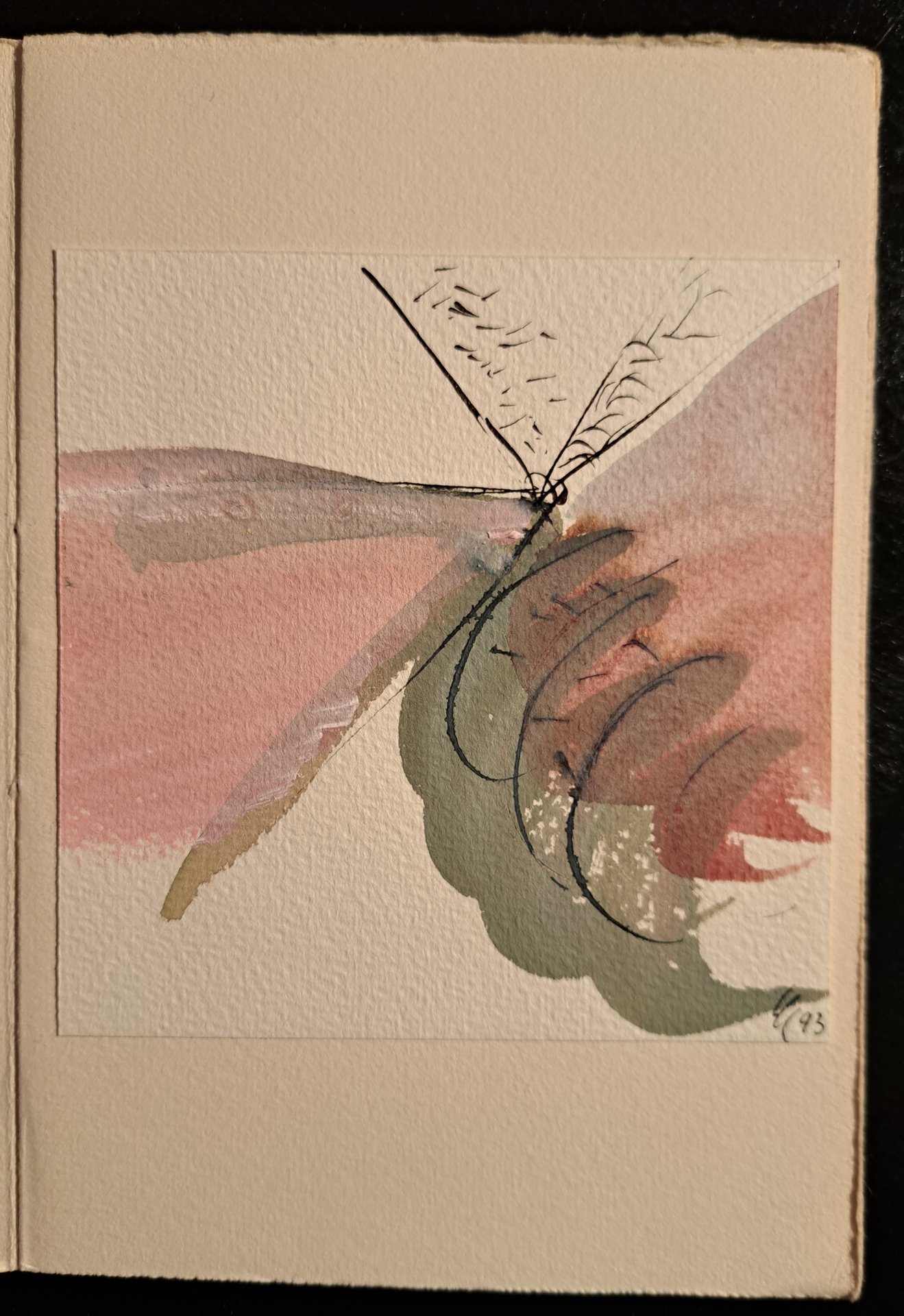 In 16°, carte 4. Due poesie e due disegni originali. Copertina: cartoncino editoriale. Tiratura di 21 esemplari. Edizione N. 389