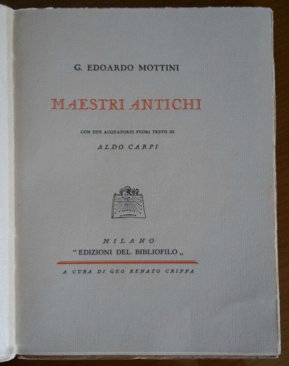 G. E. MOTTINI MAESTRI ANTICHI CON 2 ACQUEFORTI DI ALDO CARPI ED. BIBLIOFILO 1930