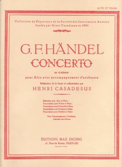 G.F. Handel - Concerto en si mineur pour Alto avec accompagnement d'orchestre - Réduction pour Alto et Piano