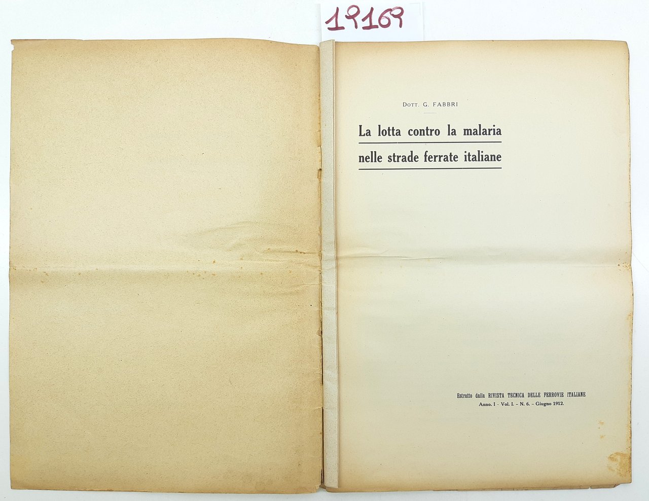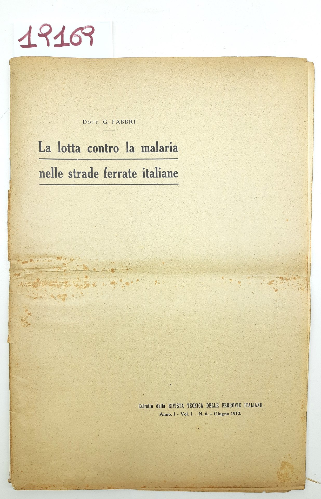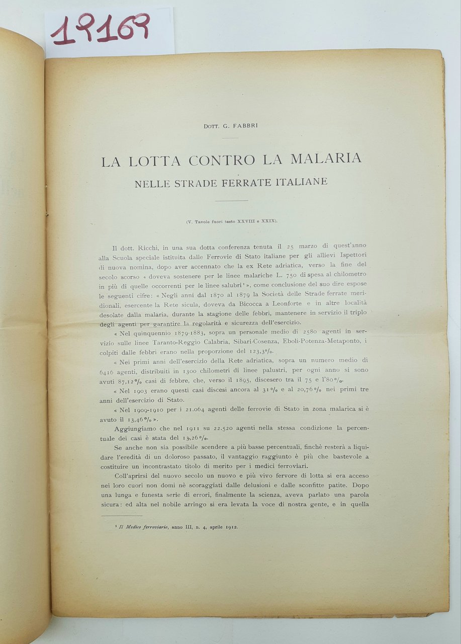 G. Fabbri La lotta contro la malaria nelle strade ferrate italiane 1912 estratto