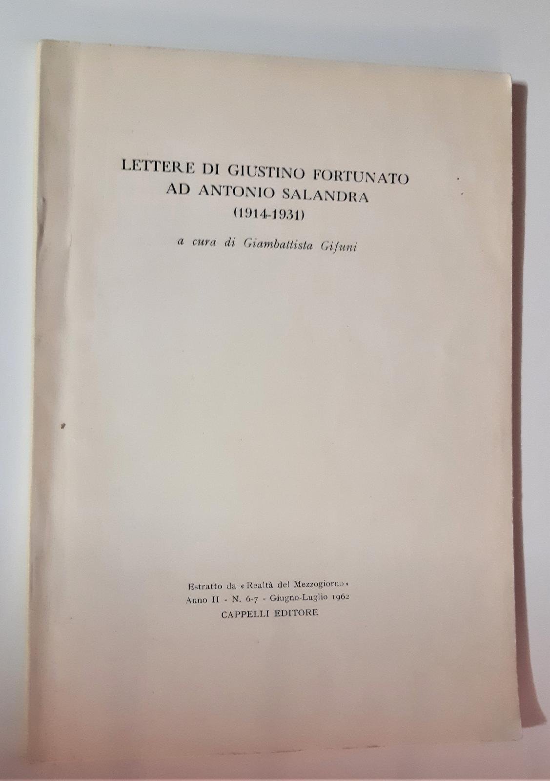 Giambattista Gifuni Lettera di Giustino Fortunato ad Antonio Salandra (1914-1931) Cappelli 1962 estratto da realt‡ del Mezzogiorno