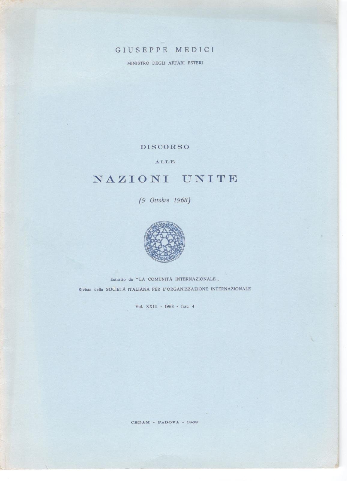 G. Medici Ministro degli Affari Esteri Discorso alle Nazioni Unite 1968 estratto