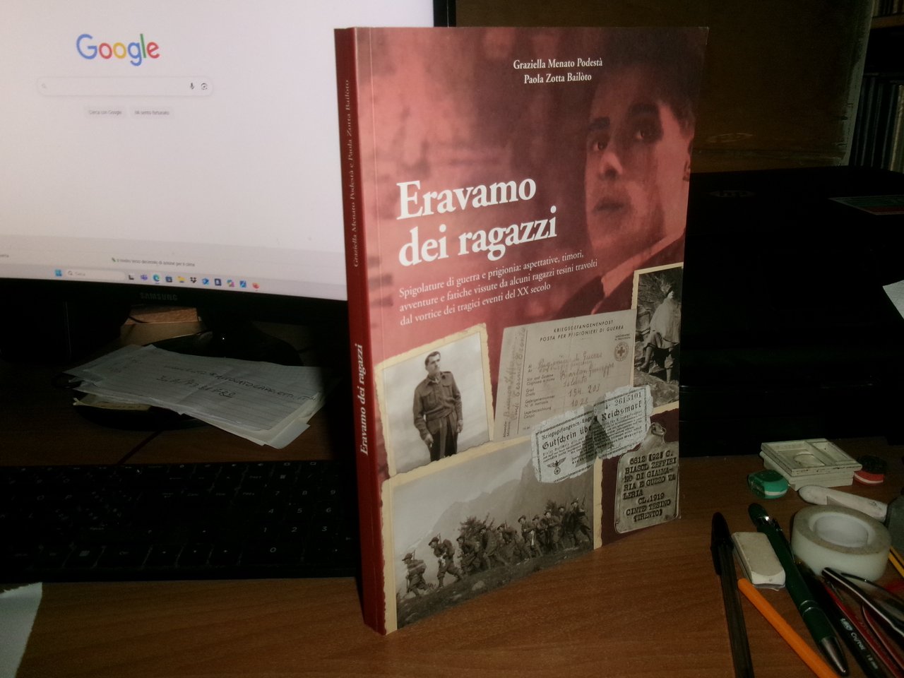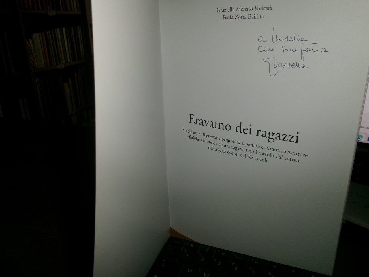 GRAZIELLA MENATO Podestà - PAOLA Zotta Bailòto. ERAVAMO DEI RAGAZZI. Spigolature di guerra e prigionia: aspettative, timori, avventure e fatiche vissute da alcuni ragazzi tesini travolti dal vortice dei tragici eventi del XX secolo. Trento, presso Litodelta Tipografia, 2014. In-8° grande, br.198 pp. con numerose immagini in bianco e nero n.t. In ottimo stato con una dedica al frontespizio. Neg. storia in basso.