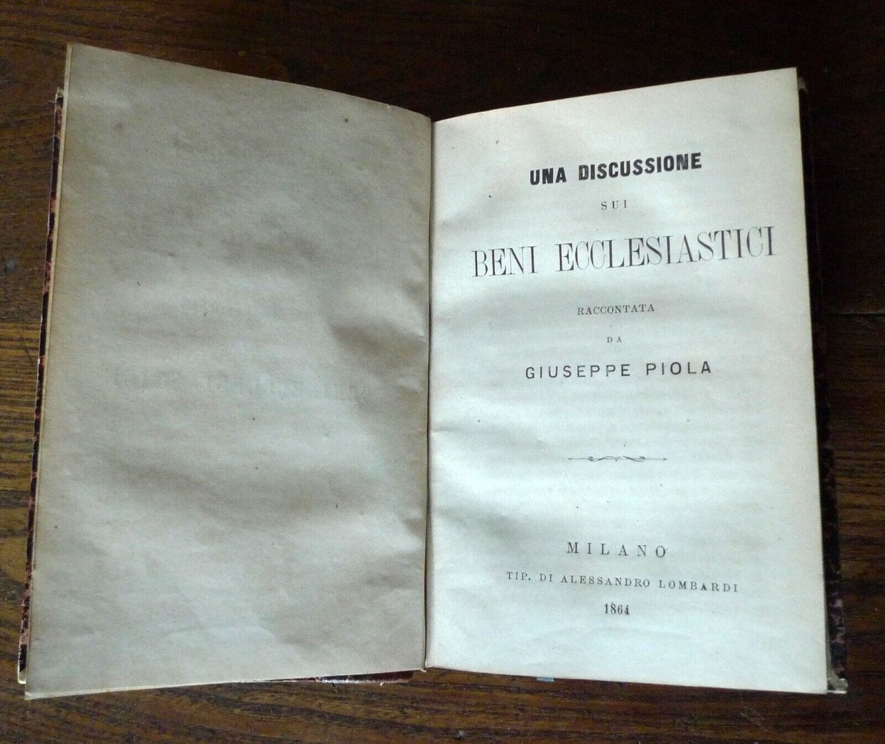 - UNA DISCUSSIONE SUI BENI ECCLESIASTICIRACCONTATA DA GIUSEPPE PIOLA.Milano, Tip. di Alessandro Lombardi, 1864,- LA QUESTIONE DEL MATRIMONIO.SAGGIO DI GIUSEPPE PIOLA.Firenze, Felice Le Monnier, 1861[2 LIBRI RILEGATI IN UN UNICO VOLUME],copertina rigida, rilegatura in mezza pelle,18x12 cm., pp.145;235,peso: g.350