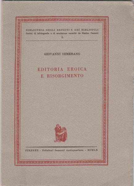 SEMERARO EDITORIA STORICA E RISORGIMENTO 1960 L5505 COPERTINA MORBIDA EDITORIALE CON LIEVI PIEGHE AGLI ANGOLI INTERNO IN OTTIMO STATO A TIRATURA LIMITATA N. COPIA 305 DI 350 STAMPATE N. PAG. 24 + ELENCO PUBBLICAZIONI CM. 25,5 X 18