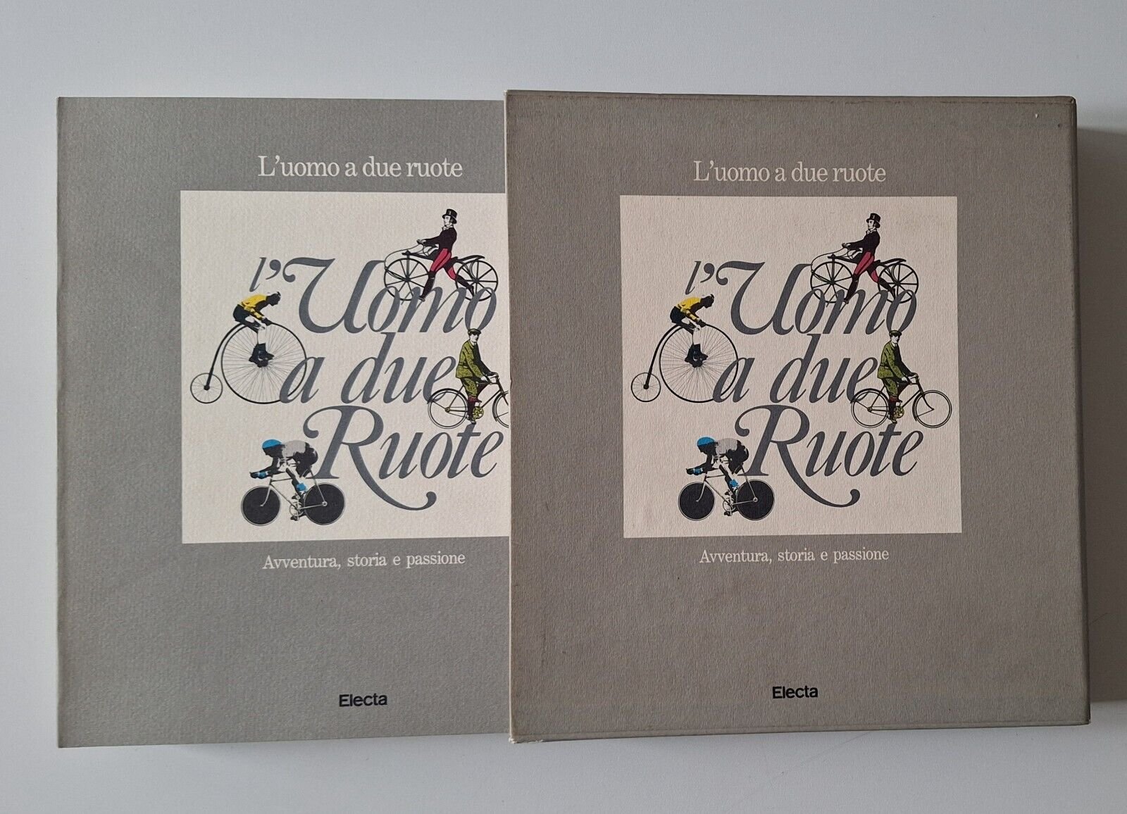 L'UOMO A DUE RUOTE ELECTA 1987Cm. 23 x 22, legatura editoriale, copertina e custodia illustrate.In ottime condizioni, lievissimi segni alla custodia.