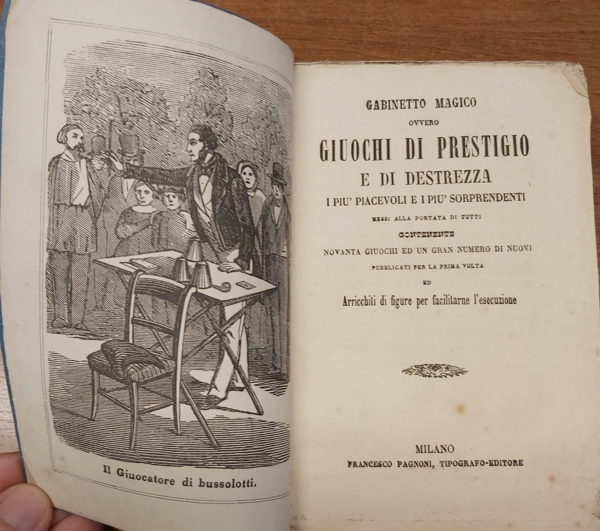 GABINETTO MAGICO ovvero Giuochi di Prestigio e di destrezza i più piacevoli e i più sorprendenti messi alla portata di tutti, contenente Novanta giuochi ed un gran numero di nuovi, pubblicati per la prima volta ed arricchiti di figure per facilitarne l’esecuzione.