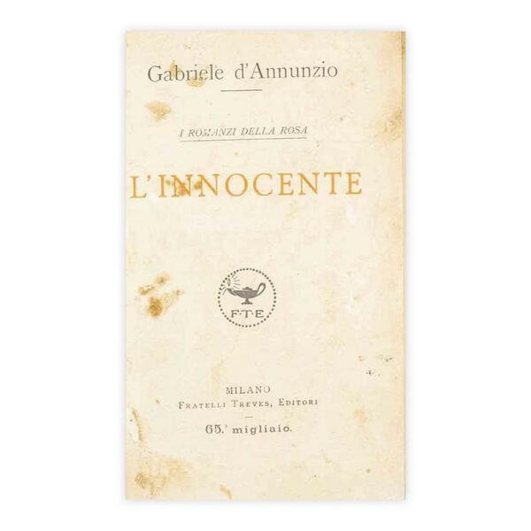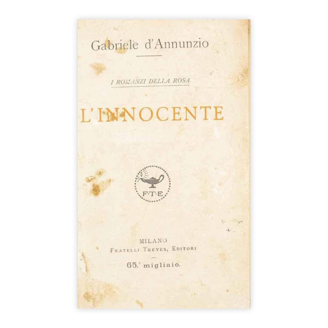 Autore: Gabriele D'Annunzio Titolo: L'Innocente  Edizione: Treves 1922 Dimensioni: 18x11,5 cm Pagine: 348 Copertina: Rigida Condizioni: Ottime come da foto