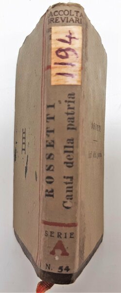 Gabriele Rossetti Canti della patria Istituto editoriale italiano 1910 c.a.