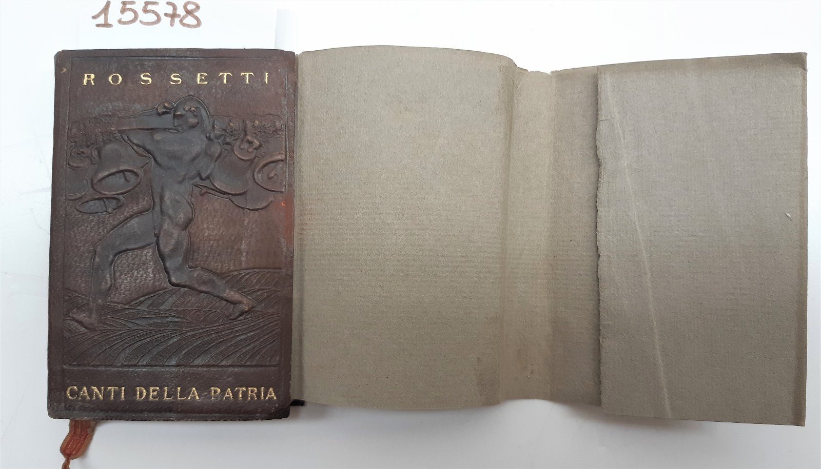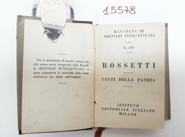 sovraccoperta editoriale in condizioni accettabili con macchie al margine interno del piatto anteriore, etichetta di catalogazione al dorso, legatura rigida in pelle marrone con frontespizio a rilievo e titoli in oro, in discrete condizioni, fogli di guardia illustrati , ex-libris tra ala interna della sovraccoperta e seconda di copertina, interno in discreto stato, alcune lievissime fioriture alle pagine interne che non disturbano la lettura, lieve brunitura al margine delle pagine, numero pagine 181 dimensioni cm 9,5 X 6,5