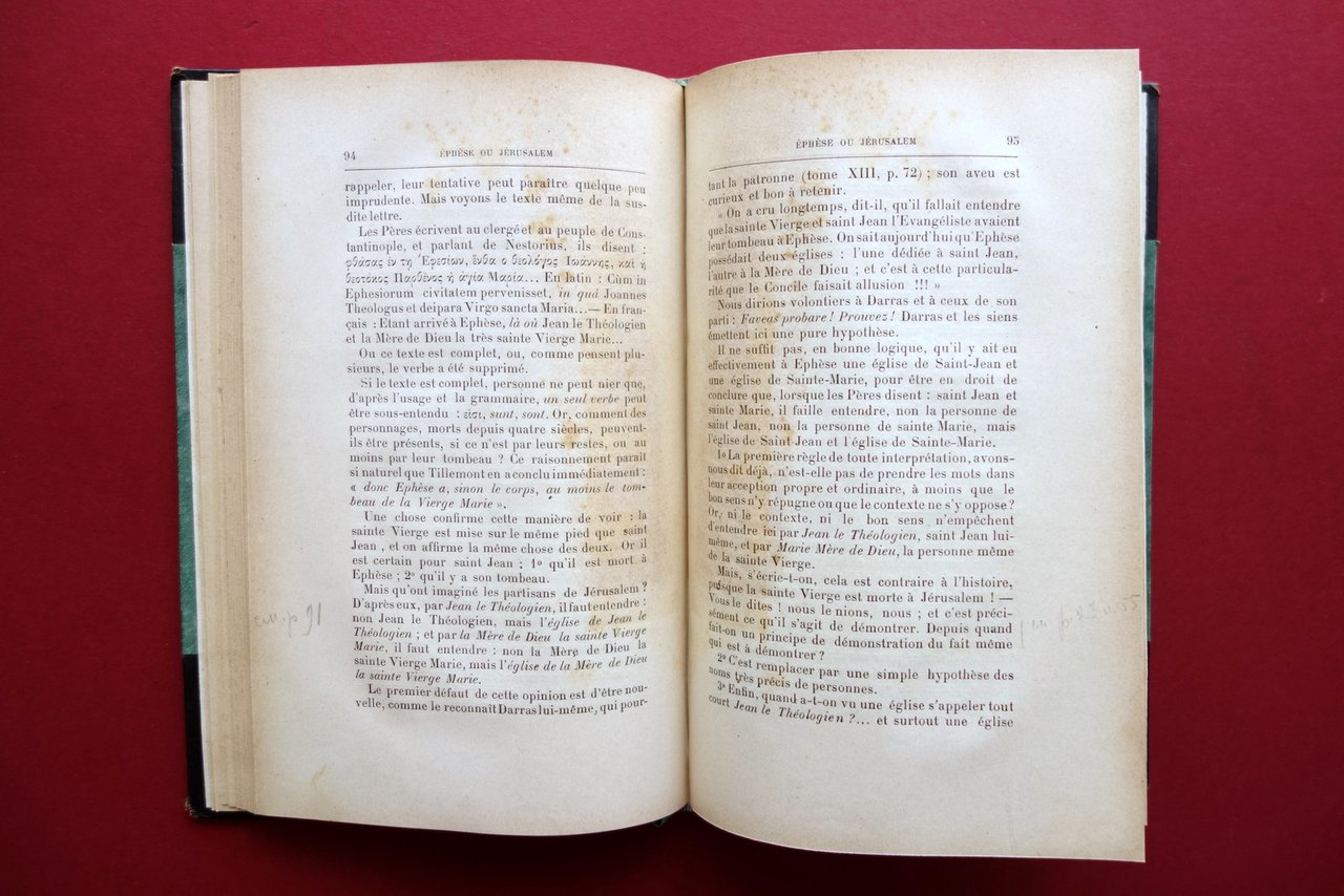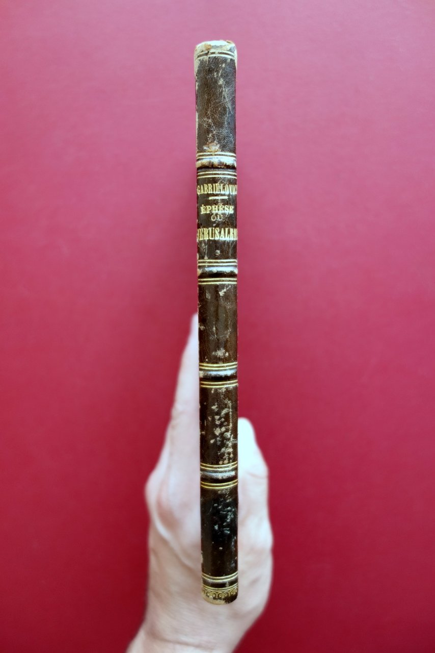 Gabrielovich, Ephese ou Jerusalem tombeau de la Sainte Vierge Librairie Religieuse H. Oudin, Paris - Poitiers 1897; cm 22x14,5; pp. X-148; legatura d'epoca in mezza pelle (dorso e angoli) con titolo e piccoli fregi impressi in oro al dorso; piatti telati. Testo in francese. Condizioni di conservazione Volume in buone condizioni con tracce d'uso; coperta con alcune piccole abrasioni prevalentemente al dorso, ai margini e agli angoli dei piatti. Interni buoni; alcune pagine con leggere annotazioni e/o sottolineature a matita, rimovibili. Testo in francese. SETT217.L21182 N