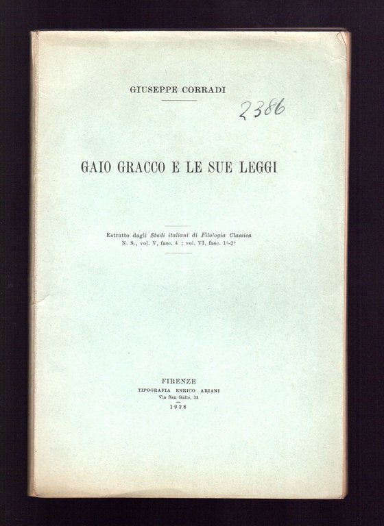 Libro vintage. Estratto dagli Studi italiani di Filologia Classica - N. S., vol. V - Fasc. 4; vol. VI Fasc. 1-2. Segni di biro in copertina. Usura da scaffale. Ordinario segno del tempo.