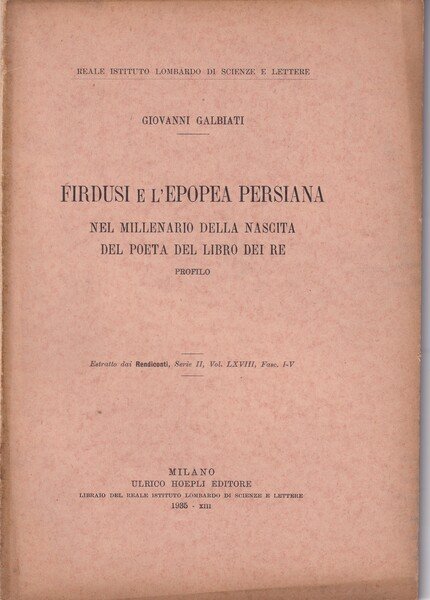 *Galbiati Giovanni - Firdusi e l'epopea persiana. Nel millenario della nascita del poeta del libro dei Re.