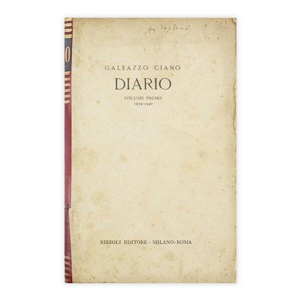 Autore: Galeazzo Ciano Titolo: Diario (Volume primo 1939-1940) Edizione: Rizzoli Editore 1945 Dimensioni: 21x13,5 cm Pagine: 339 Copertina: brossura Condizioni: Buone come da foto
