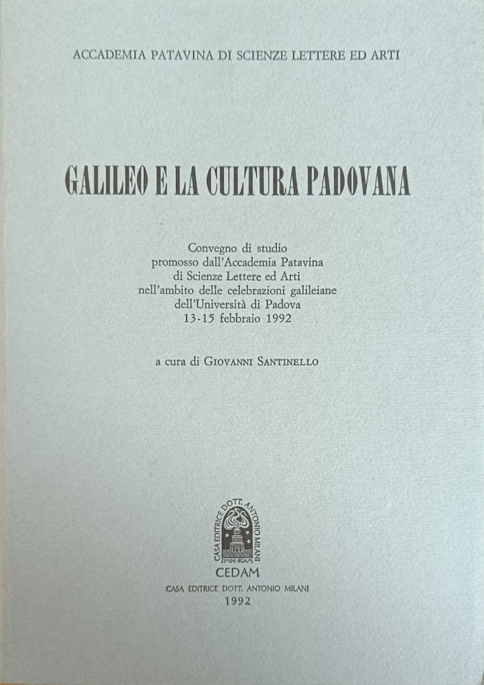 Convegno di studio promosso dall'Accademia Patavina di Scienze Lettere ed Arti nell'ambito delle celebracioni galileiane dell'Università di Padova 13-15 febbraio 1992. in ottavo leg. bross. pp. 462 Buono (Good) Buon es..