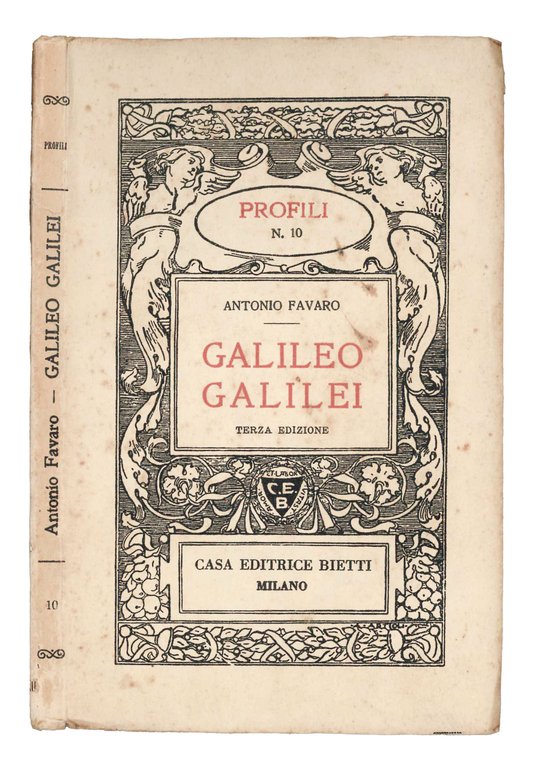 Mm. 172x109. Pp. 75. Con illustrazione in b/n in antiporta di Galileo Galilei. Brossura editoriale in cornice ornamentale, alla cop. posteriore marca editoriale (brossura lievemente macchiata). Buona copia, in barbe. Terza edizione, opera appartenente alla collezione 'Profili', nr. 10.