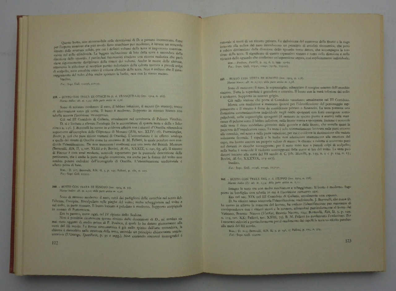 Collana “Catalogo dei Museo e Gallerie d’Italia”. Un volume di 408 pagine, tela editoriale rossa con titolo dorato al dorso e al piatto anteriore. MANCA la sovracoperta. Dimensioni: 19x26,5 cm. Colore della tela e doratura dei titoli sbiaditi (specialmente il dorso), interno in ottime condizioni. 120 pagine di illustrazioni in b/n fuori testo.