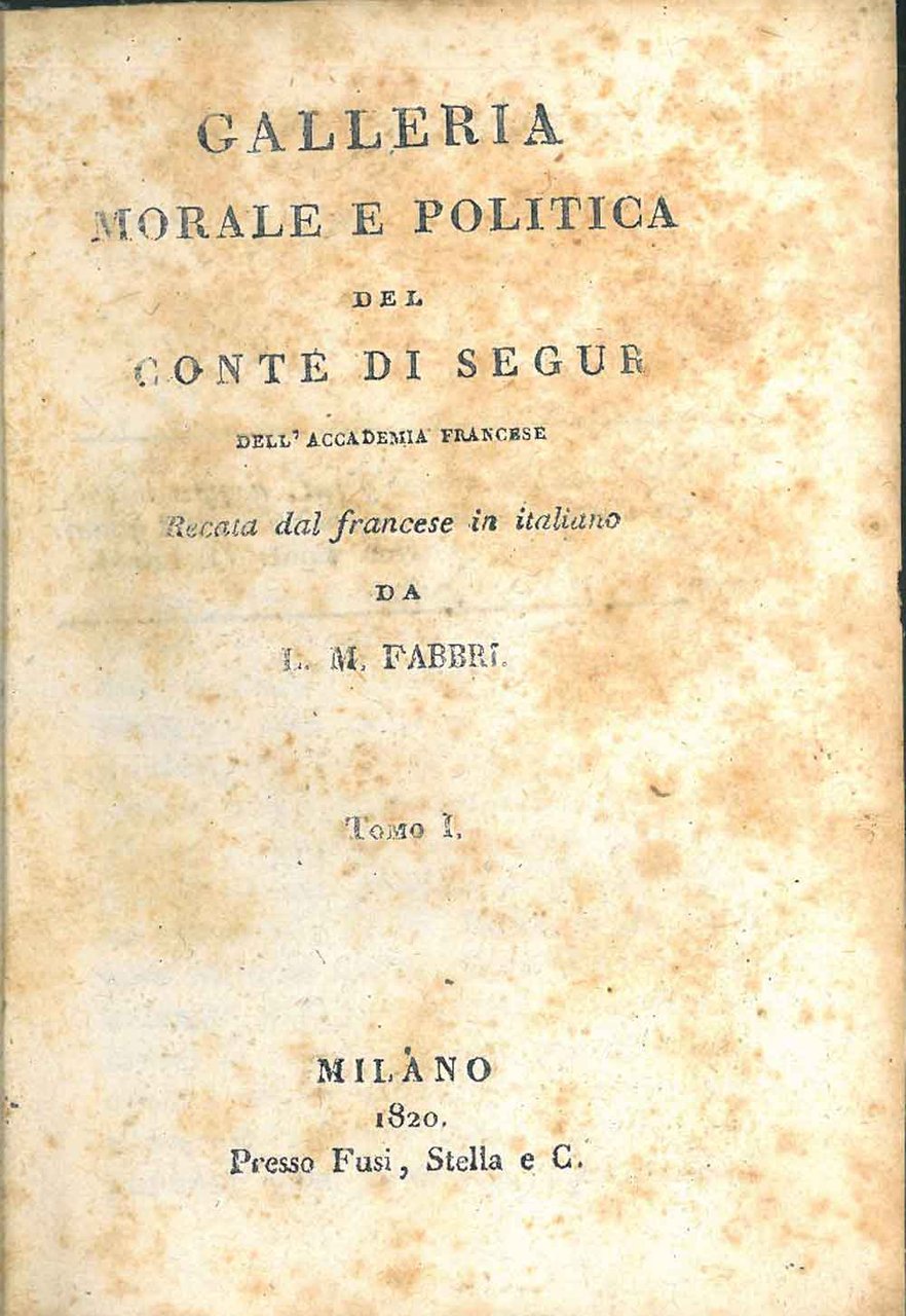 Galleria morale e politica del conte di Segur dell'Accademia francese recata dal francese in italiano da L.M. Fabbri