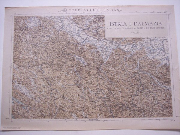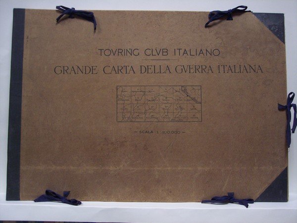 Dai tipi dell'Istituto Geografico Militare.<BR>Cartella di cm. 45,5 x 66 contenente 24 carte di cm. 44 x 63 in scala 1 : 100.000.<BR>Cartella in cartonato pesante con dorso e angoli in tela, chiusa con laccetti.<BR>Contiene 24 carte relative alle zone di: <BR>1. Nauders; 2. Bressanone - Merano; 3. Bruneck; 4. Lienz; 5. Spittal; 6. Istria-Dalmazia 7. Ortler - Cevedale; 8. Bolzano; 9. Pieve di cadore; 10. Tolmezzo; 11. Villach; 12. Klagenfurt; 13. Adamello; 14. Trento; 14 bis. Belluno; 14 ter. Maniago; 15. Udine - Tolmino; 16. Lubiana; 17. Riva; 18. Rovereto - Schio; 18 bis. Bassano - Treviso; 18 ter. Pordenone; 19. Gorizia - Trieste; 20. Adelsberg<BR>CONDIZIONI MOLTO BUONE:<BR>tracce del tempo e d'uso alla cartella (qualche abrasione e alone); <BR>carte molto ben tenute (un po' brunita e con qualche strappetto ai margini la prima)