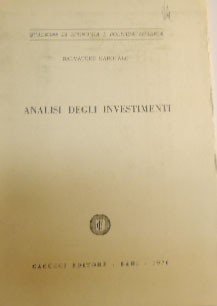 Salvatore Garofalo, Analisi degli investimenti, Cacucci Editore, bari 1976, pp. 134, cm 25, br. ed. Collana Quaderni di economia e politica agraria. Brossura un po’ sporca, per il resto ben conservato.